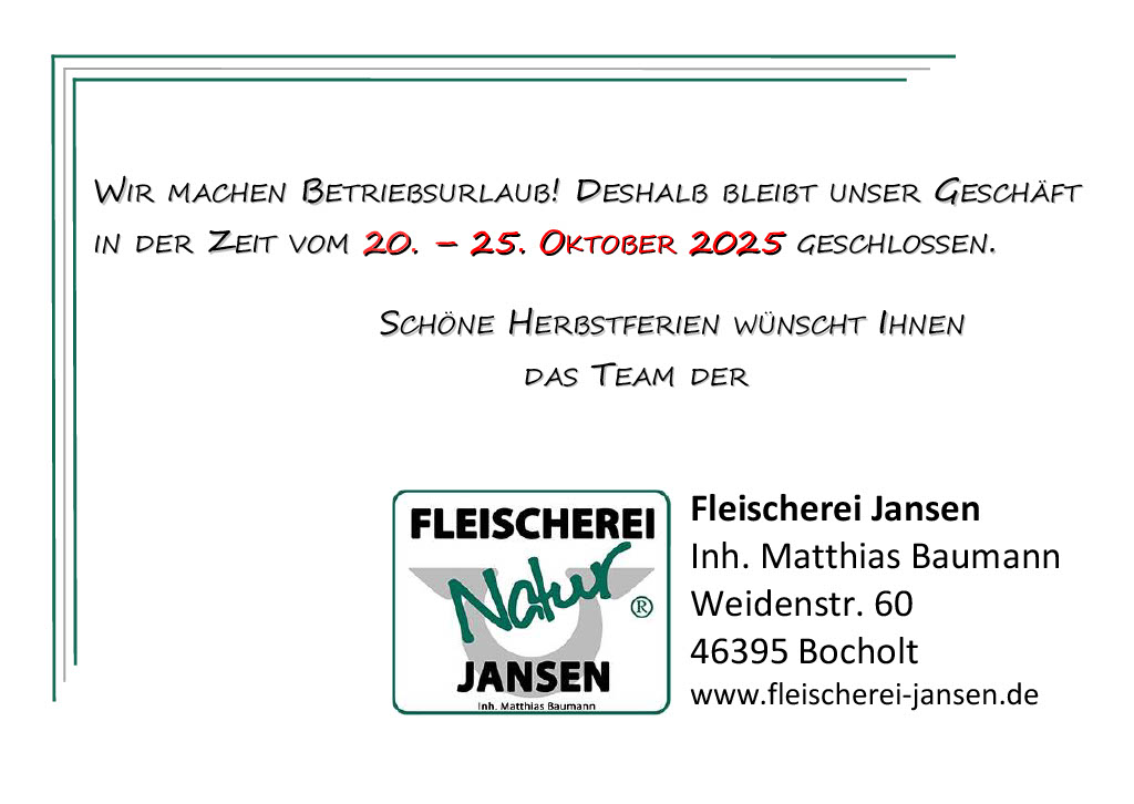 Auf Ihren Besuch in unserem Geschäft freut sich das Team der Fleischerei Jansen!